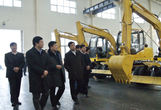 佘春明一行深入到沃尔华工程机械生产线,边参观边听取董事长杨慎伟有关情况介绍。佘书记关切地询问公司科技创新、生产销售、市场前景等情况。佘书记指出,近年来,沃尔华集团发展势头良好,行业规模持续壮大,成为拉动区域经济发展的重要增长点,今后要继续走科技创新路子,不断增强核心竞争力。在我国第一代水陆两栖破冰车研制现场,佘书记详细询问了研发过程,观看了黄河包头段试验的央视新闻报道视频,强调指出,沃尔华集团下步要把发展的着力点放到转方式调结构上,着重培育科技含量高、辐射带动强的高科技项目,上好项目大项目,推动产业升级。佘书记希望沃尔华集团要加快融入高新区发展大局,在打造工业升级板方面走在全市工程机械行业前列,创新带动,努力做行业领航企业,努力为全区经济和社会发展多做贡献。