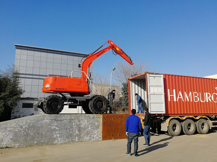 1月26日,沃尔华集团2台DLS808S-9湿地型全液压大轮胎式挖掘机装车发往菲律宾。