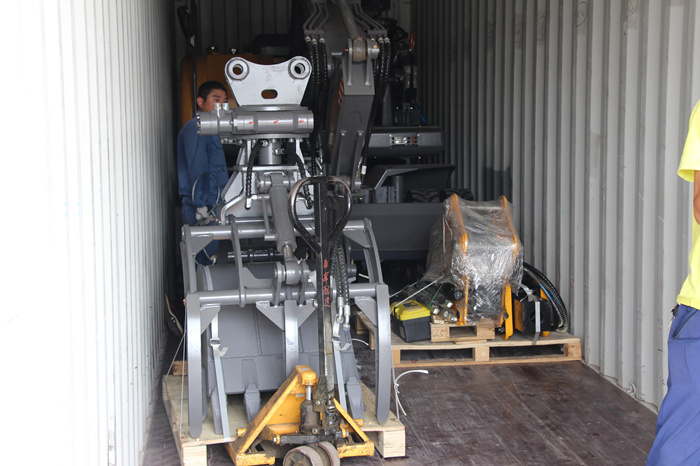 此次出口挖掘机型号为DLS885BLH-9M轮式蔗木装卸机。