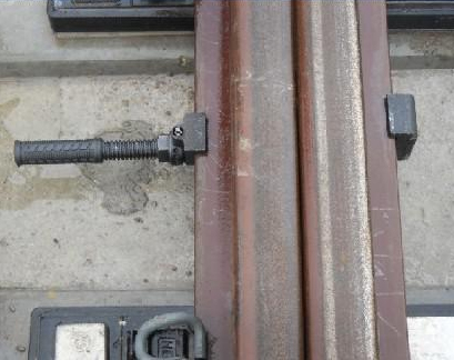 a:顶式顶锁器,先把顶锁器调到最短处,顶锁器下卡槽处卡在基本轨底边,顶丝端部对准斥离轨,调节中部丝杆顶到斥离轨,最后用钩型扳手扭紧,再把防松螺母锁紧,最后把防盗罩盖上,上锁锁闭。拆除时反方向程序进行。
