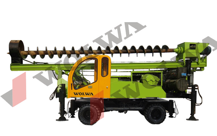 GNLZ360轮式长螺旋打桩机采用液压步履式底盘,自动化程度高,可自行行走及360度回转,设有四条液压支腿及一条行走油缸以辅助行走及回转同时增加施工时的整机稳定性,可整机进行转运,能钻孔成孔一机一次完成,也可用于干法成孔、注浆置换改变钻具后还可采取深层搅拌等多种工法进行施工。