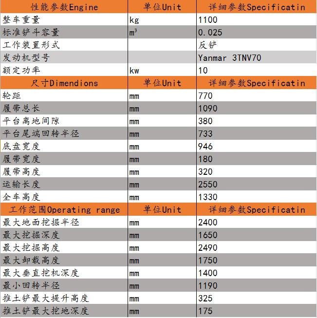 该产品自主设计、外观漂亮、配置高、洋马动力、进口系统、性能优越、油耗低、作业范围广,适合蔬菜大棚的土地疏松,市政部门的园林绿化、果园苗圃栽树挖坑,混凝土路面破碎,砂石料搅拌,空间狭小的施工作业等。使用快换接头,可选配旋挖钻、破碎锤、装载斗、