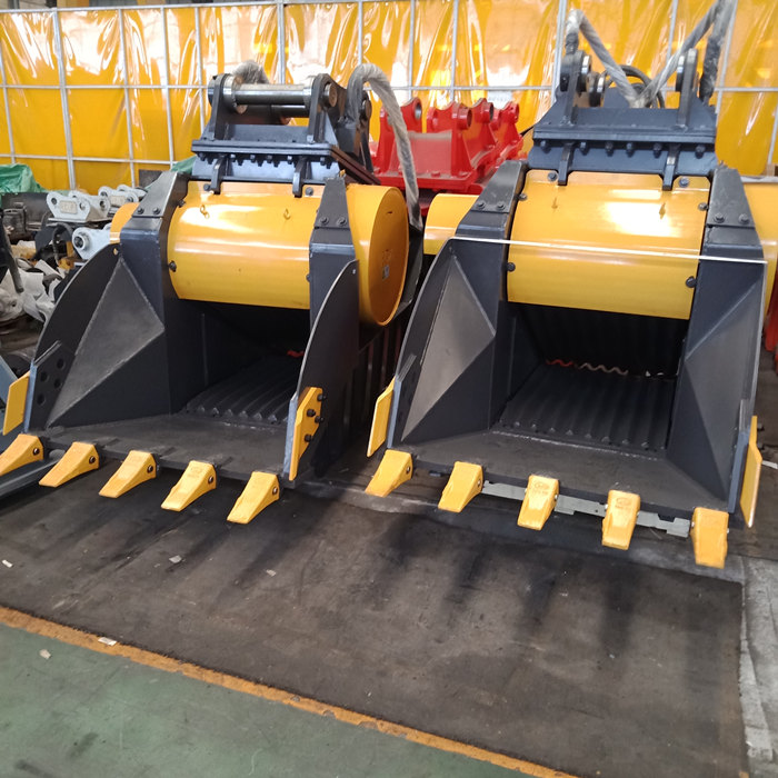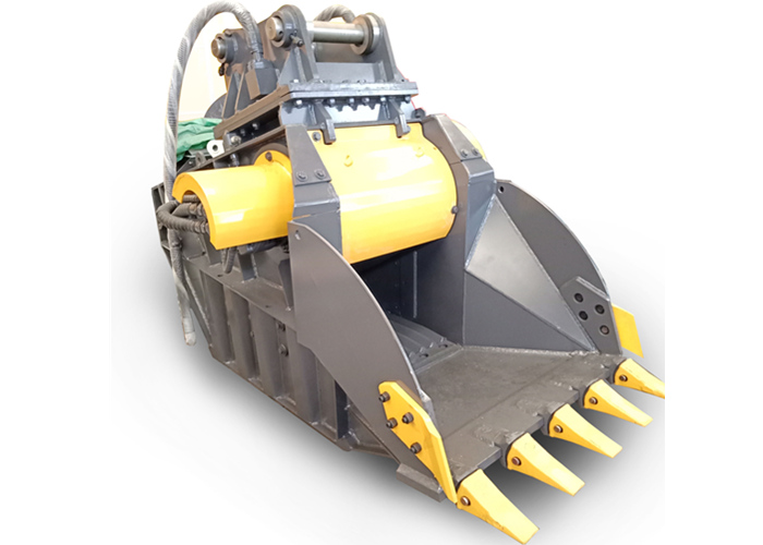 颚式破碎斗是一种机架外形成铲斗状的新型液压破碎属具,作为挖掘机的配套属具,在使用时,该装置以挖机臂为操作载体铲装物料,并对铲装的建筑垃圾或物料进行破碎处理,从而可以得到所需求的物料块度以及可回收有用材料。通过现场挖掘、现场破碎、现场回收利用,实现建筑垃圾资源化、减量化、无害化,不仅大大减少了运输量,节省填埋费,提高了回收利用率,而且节约了大量填埋用地,减少对环境的污染,还能减少对天然砂石的开采,保护了自然资源,符合国家可持续发展战略。该装置具有结构灵活,工作可靠,适应性强,成本低,易维护等突出优点,还可广泛应用于矿山开采、道路维护与建设等行业中。