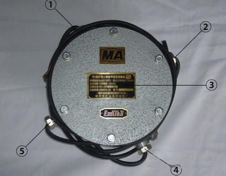 ①:交流~127V输入;②:接点输出;③:铭牌;④:直流输入;⑤:直流12V输出