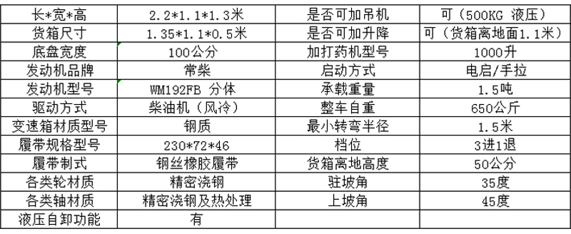 1500型履带运输车技术参数