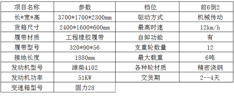 6000型履带运输车技术参数