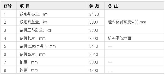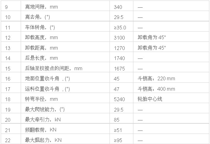 整机采用玉柴机器股份有限公司发动机;传动系统采用单级四元件变矩器、行星式动力换挡变速箱、四轮驱动的驱动桥;工作装置采用单摇臂“Z”形连杆机构,软轴操纵;转向系统采用铰接车架,全液压转向器;制动系统采用气顶油钳盘式行车制动和涨蹄式停车制动。驾驶室可选装暖风机。
