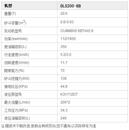 DLS200-8B挖掘机采用国际知名品牌发动机,更节能、环保,动力更为强劲;完美契合的液压系统、电气系统可以有效提高工作效率和质量;超强结构的底盘,可以满足挖掘机在各种复杂环境中的施工需求和耐久性;人性化的驾驶室设计,让用户得到一种安全舒适的驾驶体验。