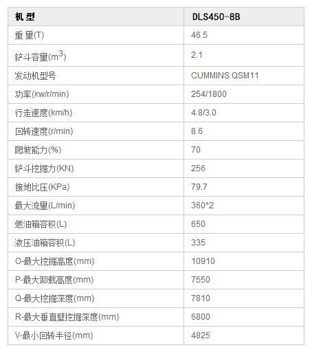 DLS450-8B采用原装进口康明斯发动机,额定功率为252KW/1800rpm;功率大,油耗低,维护费用低;最大爬坡角度35°,液压系统采用日本川崎公司专项设计、匹配的液压系统和日本KYB公司的行走马达,确保液压系统工作的可靠性和稳定性,监控器采用世界先进的EPOS电子功率自动控制系统,履带架、上转台、动臂、斗杆、挖斗,材料选用及制造工艺完全按照国际KES标准要求,强度高、性能好;依据人机工程学设计的驾驶室具有像家一样的操作环境和优良的可视性,低噪音,全视野的前窗及侧窗确保在所有方向有优良的可视性,驾驶室内标准配置自动空调系统,使驾驶员有一个好的操作环境。
