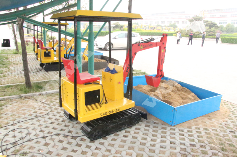 儿童挖掘机是游乐设备的一种,是以电机为动力,通过液压泵控制单元把压力分配到单个油缸的过程。主要由下底盘、上底盘、动臂、斗杆、铲斗、动力单元、控制单元、回转支承、回转马达、液压油缸、电子辅助控制系统组成,运行速度较慢,可控性强是一款高仿真挖掘机。。