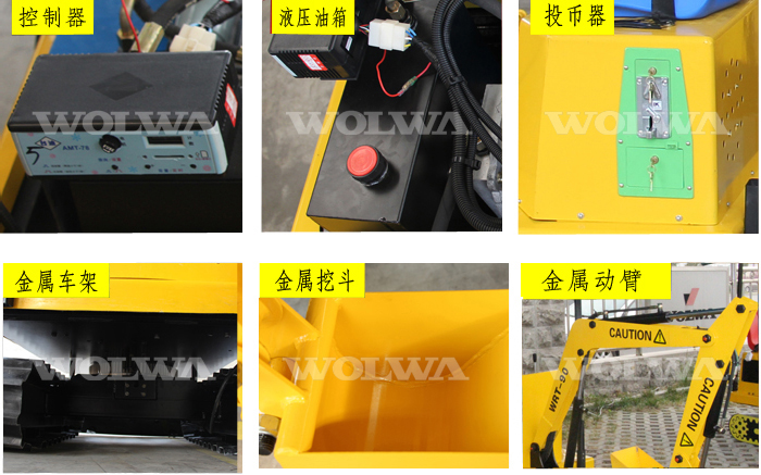 WRT-180儿童游乐挖掘机控制方式有投币型、钥匙型和遥控型三种可以选择。根据工程用挖掘机的工作原理设计开发的一款益智游乐设备,外观大方简洁、技术先进、工艺精湛、结实耐用、操作简便。为全仿真电动液压挖掘机,操作方式功能与工程挖掘机一样,有下挖深度可任意旋转,本系列产品为电动液压工作原理。动力强劲,适合室外,适合挖掘沙土或相对较重的物体。适用于室内外游乐场、公园、科技体验馆、广场等一些游乐场。具有开发儿童智力锻炼小孩动手动脑协调能力。适合全家参与。经营方式多样化,可以体验操作,竞技比赛,也可以根据所挖东西的奖励,参于互动游戏,外形美观,娱乐性强。产品需要搭配沙池,或海洋球池使用,也可以更具场地设计池子。使用寿命10年。