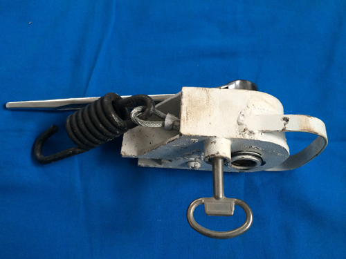新型开启定位式钢丝绳防溜器是我公司研制的专利产品,是在铁路车辆防溜存在着断绳、夹绳、钢丝绳频繁弯曲,过早疲劳断裂及维修难,开启不定位,操作困难,无法更换钢丝绳等现象、设计出一种新型拉簧式钢丝绳防溜器。一、新型开启定位式钢丝绳防溜器具有以下优点: