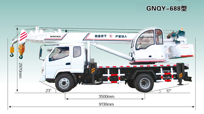 自制吊车专用底盘,潍柴4102大功率发动机动力强劲,行车带液压助力式方向机、断气刹制动系统、带有中心回转器可实现360度无限度连续旋转,50锰锻打燧火轨道加工回转支承,转向采用可靠耐用的吊车专用行星减速机,沃尔华五边型吊臂专利技术,全液压伸缩式支腿,大跨度幅式H字型支腿大架,起升双速度设计,主卷扬采用8吨液压绞车(轴向柱塞马达)、副钩采用沃尔华专利高低速常闭式卷扬机(支持快速放绳),液压系统采用伺服控制(可实现多项复合操作),流线型驾驶室,国际行业低价位。可安装电机泵站,直接以380V电源作动力,节约环保。产品轻便灵活,价位低廉,适用于农村及城乡结合部工作。低价位投资,高档产品回报。为了降低客户的风险,公司还随车给每台产品在中国人寿财产股份有限公司入了一年的与产品同价值质量责任保险,客户可更放心使用。