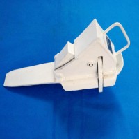 新型压盖式防盗铁鞋结构上有了大变化,推动机构采用转动压盖式。由压盖(3),销轴(5),扭簧(11)及带把拨勾。当车轮压上铁鞋,车轮转动→压上压盖→压盖转动压下拨勾把,使拨勾转动,打开轨爪。保证铁鞋通过钢轨夹板,车轮退回,扭簧反弹推动压盖恢复原位。此铁鞋轨爪打开阻力小,转动灵活,十分可靠,一般不需要日常维修即可保证正常使用。十分适合现场工人使用。并能确保安全,可靠实用。