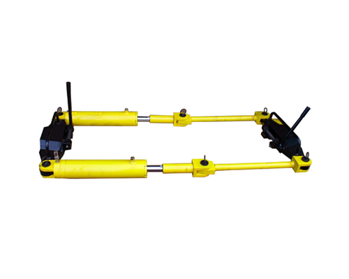 YLS-900型液压钢轨拉伸机主要由2个斜铁座、2根加长杆、2个双作用油缸、6个销轴、1套附加配件(中心距610mm用)、1个电动泵站及高压油管等部分组成。