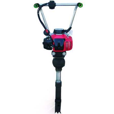 它以汽油机做动力源,通过离心式离合器、橡胶减震器、拖动振动器产生高频扰动力,使枕下石喳重新排列密实,从而实现对道床石喳捣固的目的。该机设计新颖、结构紧凑、体积小、重量轻、机动性强、手把两级减震,手提便携、上下道