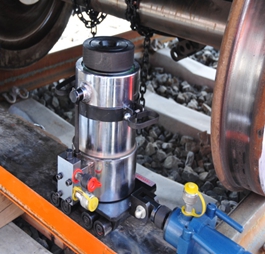 F-150型复轨器顶举点为中梁,举升缸为三级液压缸,最大横移量为500mm、最低工作点为400mm、最高升程800mm、顶举中梁车辆重量适用于150吨到350吨之间,顶举中梁。适用于机车、大型养路机械车辆及钢铁企业铁水车等救援起复作业。