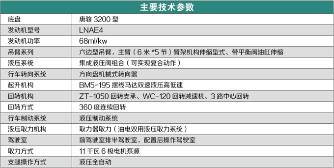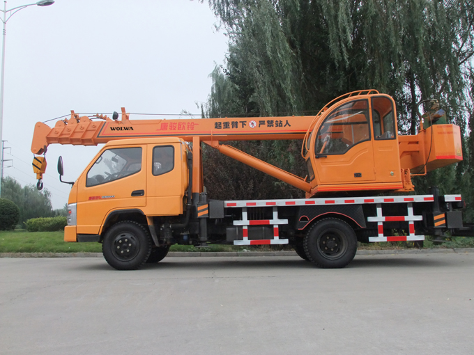 自制吊车专用底盘,潍柴4102大功率发动机动力强劲,行车带液压助力式方向机、断气刹制动系统、带有中心回转器可实现360度无限度连续旋转,50锰锻打燧火轨道加工回转支承,转向采用可靠耐用的吊车专用行星减速机,五边型吊臂专利技术,全液压伸缩式支腿,大跨度幅式H字型支腿大架,起升双速度设计,主卷扬采用8吨液压绞车(轴向柱塞马达)、副钩采用沃尔华专利高低速常闭式卷扬机(支持快速放绳),液压系统采用伺服控制(可实现多项复合操作),流线型驾驶室,国际行业低价位。可安装电机泵站,直接以380V电源作动力,节约环保。产品轻便灵活,价位低廉,适用于农村及城乡结合部工作。低价位投资,高档产品回报。为了降低客户的风险,公司还随车给每台产品在中国人寿财产股份有限公司入了一年的与产品同价值质量责任保险,客户可更放心使用。