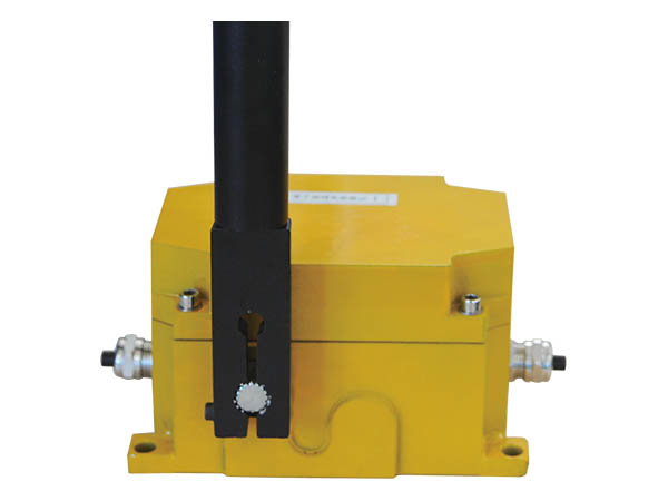 该产品按照一定间隔安装在胶带机的行人一侧,相邻两台之间用钢丝绳通过开关上的摆臂连接起来。当胶带机发生紧急情况拉紧钢丝绳时,驱动内部凸轮,使行程开关动作并闭锁,实现紧急停车同时发出报警信号。故障排除后,人工解锁允许胶带机运行。
