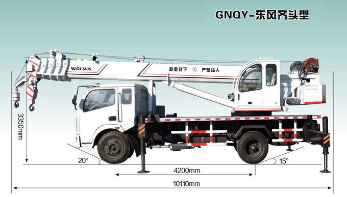 GNQY-东风齐头型汽车起重机是是一款性能好操作灵活的12吨小型汽车起重机,以东风齐头汽车吊装底盘做行走,驾驶更舒适、安全。可装电机泵站,直接以380V电源作动力,节约环保。该产品通过全国机动车公告公示,在全国各地均可上牌照,并且购置费及其他营运费用全免,产品轻便灵活,价位低廉,适用于农村及城乡结合部工作。低价位投资,高档产品回报。