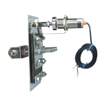 3、感应开关的调整:出厂时的机械推力在4Kg以上(胶带跑偏时向外的推力摩擦挡轮),当需要更大的推力时可把传感器向感应片方向调整。