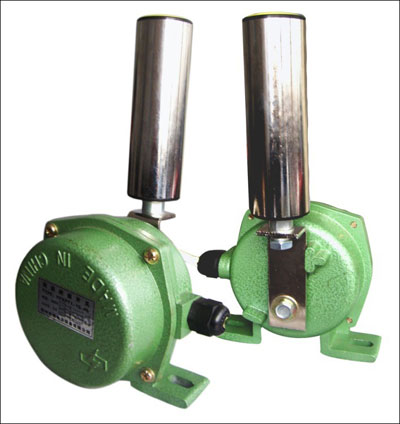 当胶带运输机现场发生紧急事故时,可拉动系于摆臂上的钢丝绳,使摆臂旋转而带动机内凸轮并感应微动开关,发出停机信号。