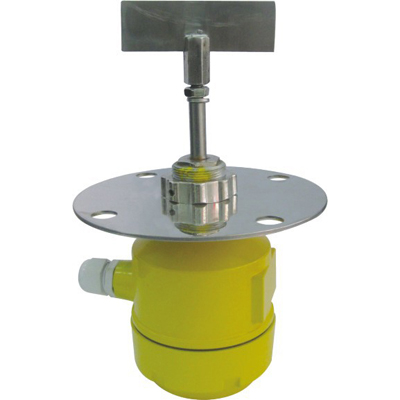 利用永磁电机带动叶片旋转,当被检测物料上升至叶片位置时,叶片转动受阻,该阻力通过传动轴传递到接线盒内的检测装置,检测装置则向外输出一个开关信号,并切断电机电源使叶片停止转动。当物料下降时,叶片阻力消失,检测装置便依靠弹簧的拉力恢复到原始状态,叶片恢复旋转状态。针对使用于比重相差较大的物料,可调整弹簧拉力,比重大时弹簧拉力调整至最强,反之则调整至最弱。